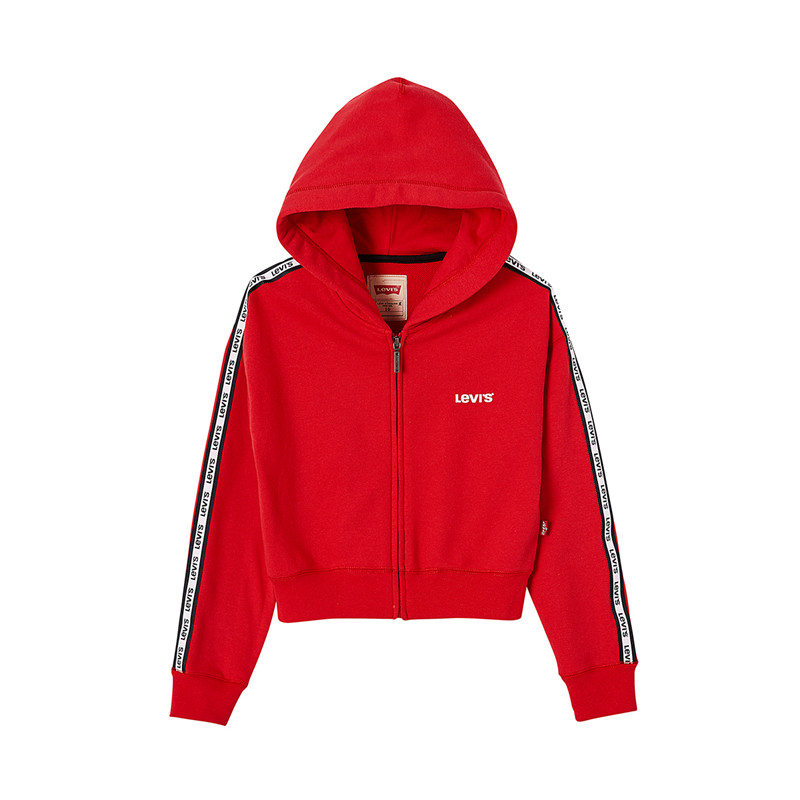 Super lækker rød sweat cardigan fra Levi’s. Sweaten har hætte og logo bånd langs ærmerne. Rib ved håndleddene og i bunden af sweaten. 60% bomuld – 40% Polyester (Læs mere)
