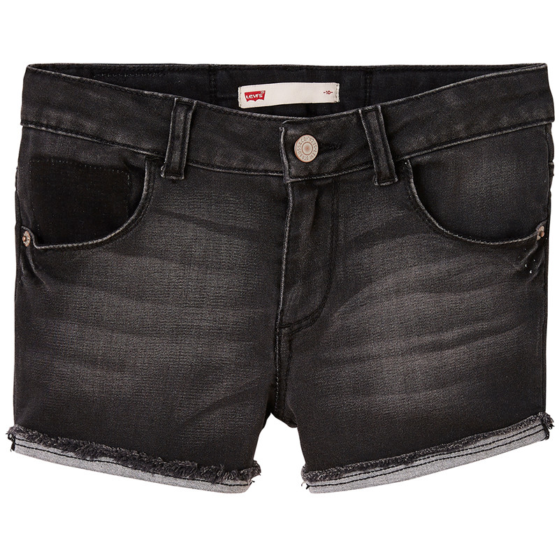 Smarte sorte denim shorts til piger fra Levis. Shortsen er lavet i en flot sort farve med let slid. Rå kanter der er bukket op i et lille opsmøg, Levis shortsen har knap og lynlås lukning. Justerbar indvendig i taljen. 73% Bomuld, 25% Polyester, 2% Elesta (Læs mere)
